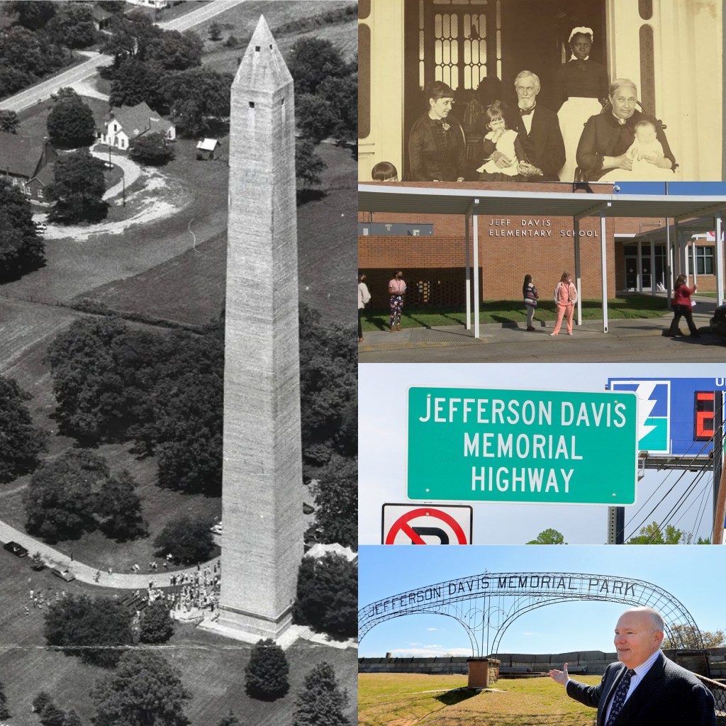 Calls for unity, reconciliation, and moving forward have issued from conservative political leaders since the attempted coup of January 6. “Impeaching the President with just 12 days left in his term will only divide our country more,” stated Republican House Minority Leader Kevin McCarthy, “I have reached out to President-elect [Joe] Biden today and plan to speak to him about how we must work together to lower the temperature and unite the country to solve America’s challenges.” McCarthy was among the firebrands who rejected the presidential results and voted on January 6 (after the melee in the Capitol) to decertify the electoral college votes. Calls for unity in the aftermath of violence and a defeated coup harken back to the memorializing of secessionist and seditionist Jefferson Davis following the Civil War. After awaiting treason charges in a jail cell following the Confederacy’s defeat, Davis received a presidential pardon and lived out his life in peaceful retirement (right corner image) without ever expressing regret or contrition for a war that claimed nearly 700,000 lives. Not especially popular during his time as Confederate president, Davis was memorialized as a great American hero in the decades of reunion and reconciliation that followed, with schools, parks, a highway, and many monuments, including a 351′ obelisk in Fairview, Kentucky, which is featured in the U.S. National Register of Historic Places.